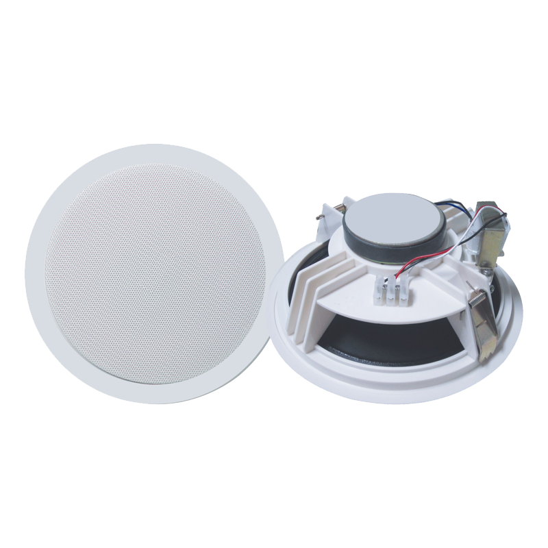 专业天花式设计,塑料外壳,铝质网面材料结构,立体声功率放大、高保真扬声器